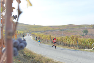 A ottobre sono finalmente risuscito ad allenarmi abbastanza bene riuscendo a dare un senso alle settimane di preparazione che mi ha proposto per l'inverno Germano e così il giorno 29 mi sono presentato sulla linea di partenza dell'ottava edizione della Ecomaratona del Barbaresco di Alba che ho corso sulla distanza più breve della mezza maratona; è stata la mia settima partecipazione a questa gara a cui sono molto affezionato avendone vinto tre edizioni e salito sul podio assoluto altre due. Domenica mattina la giornata ad Alba è serena e quasi calda, pronta a regalare al migliaio di iscritti divisi sulle due distanza una bella gara sul percorso che si snoda tra le colline delle langhe coltivate a vite; tempo di salutare i tanti amici che incontro ed è ora di partire! Allo sparo di pistola un primo gruppetto di avvia prendendo qualche decina di metri di vantaggio sui diretti avversari tra cui mi ritrovo anche io.